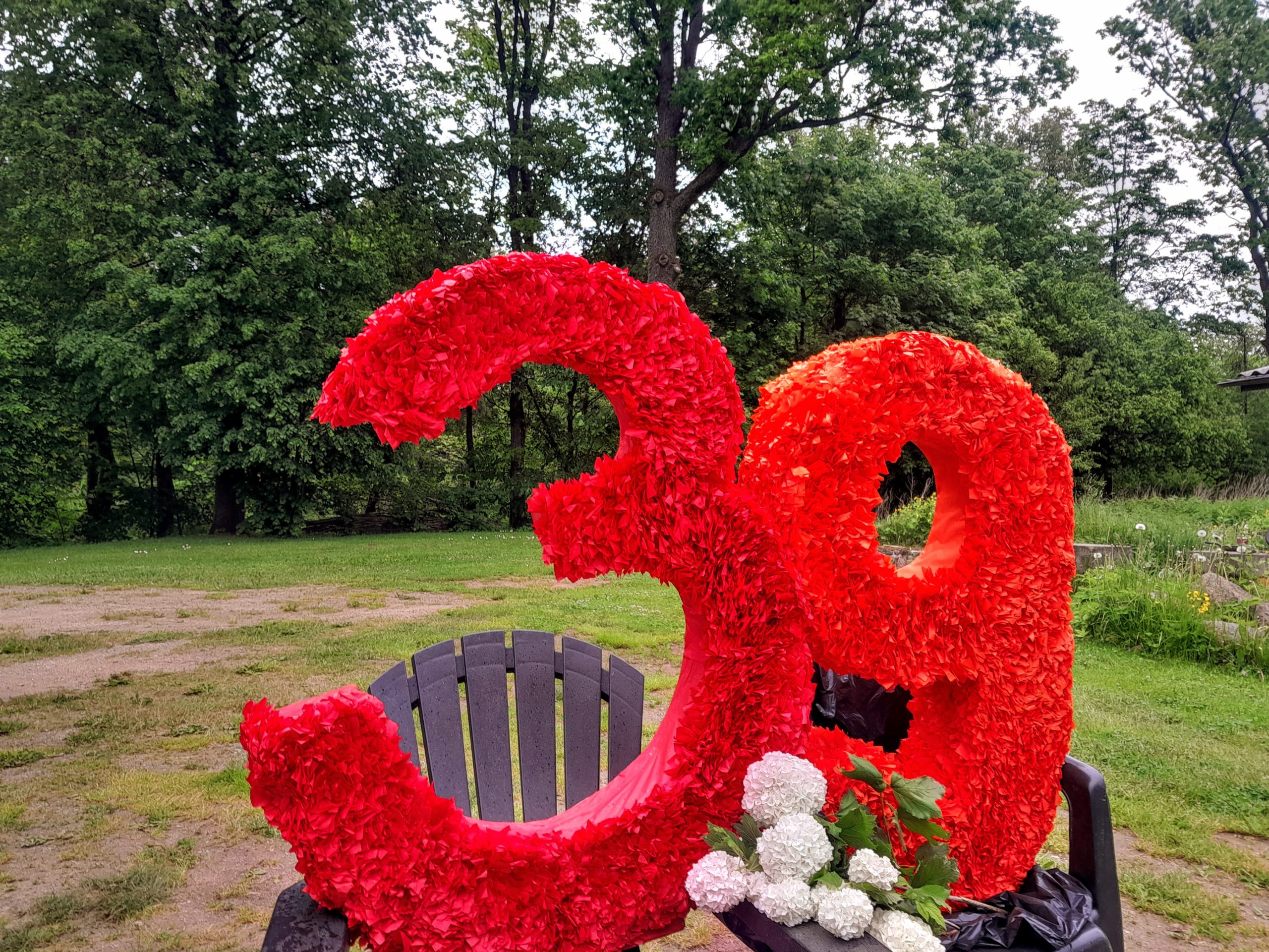 Augstums aptuveni 80 cm. Materiāls – putuplasts, krepapīrs.