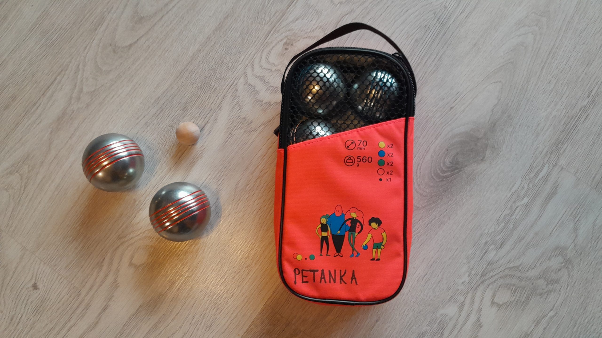 Atklājiet lielisku brīvā laika pavadīšanas veidu ar šo ‘’Petanka’’ spēles komplektu. Tā ir lieliska izklaide brīvā dabā gan ģimenei, gan draugiem un ir piemērota spēlētājiem jebkurā vecumā. Šī tradicionālā franču spēle, kas pazīstama arī kā ‘’Boče’’, kļūst arvien populārāka, pateicoties tās sabiedriskajam raksturam un vienkāršajiem noteikumiem. Spēli var spēlēt dažādos sastāvos: trīs pret trīs (Triplette), divi pret divi (Dublette) vai viens pret vienu (Tête-à-tête). Petanku var spēlēt uz jebkuras līdzenas virsmas, zāles, pludmalē vai pat uz parketa, (ja spēlē telpās vai uz cietas virsmas, tad bumbas ripina, nevis met), nodrošinot nebeidzamas spēles iespējas. Petanka neprasa fizisku spēku, galvenais ir stratēģija un precizitāte. Jārēķinās ar ilgstošu atrašanos stāvus un biežu pietupšanos, bet ieguvums ir aktīva laika pavadīšana svaigā gaisā. Iepakojuma izmērs: 30 x 15 x 7 cm. Svars: ~ 6 kg. Katrs bumbiņu pāris ir iegravēts ar citu zīmējumu. Izturīga soma ar rāvējslēdzēju un rokturi ļauj ērti transportēt visu komplektu. Komplektā atradīsiet visu spēlei nepieciešamo: